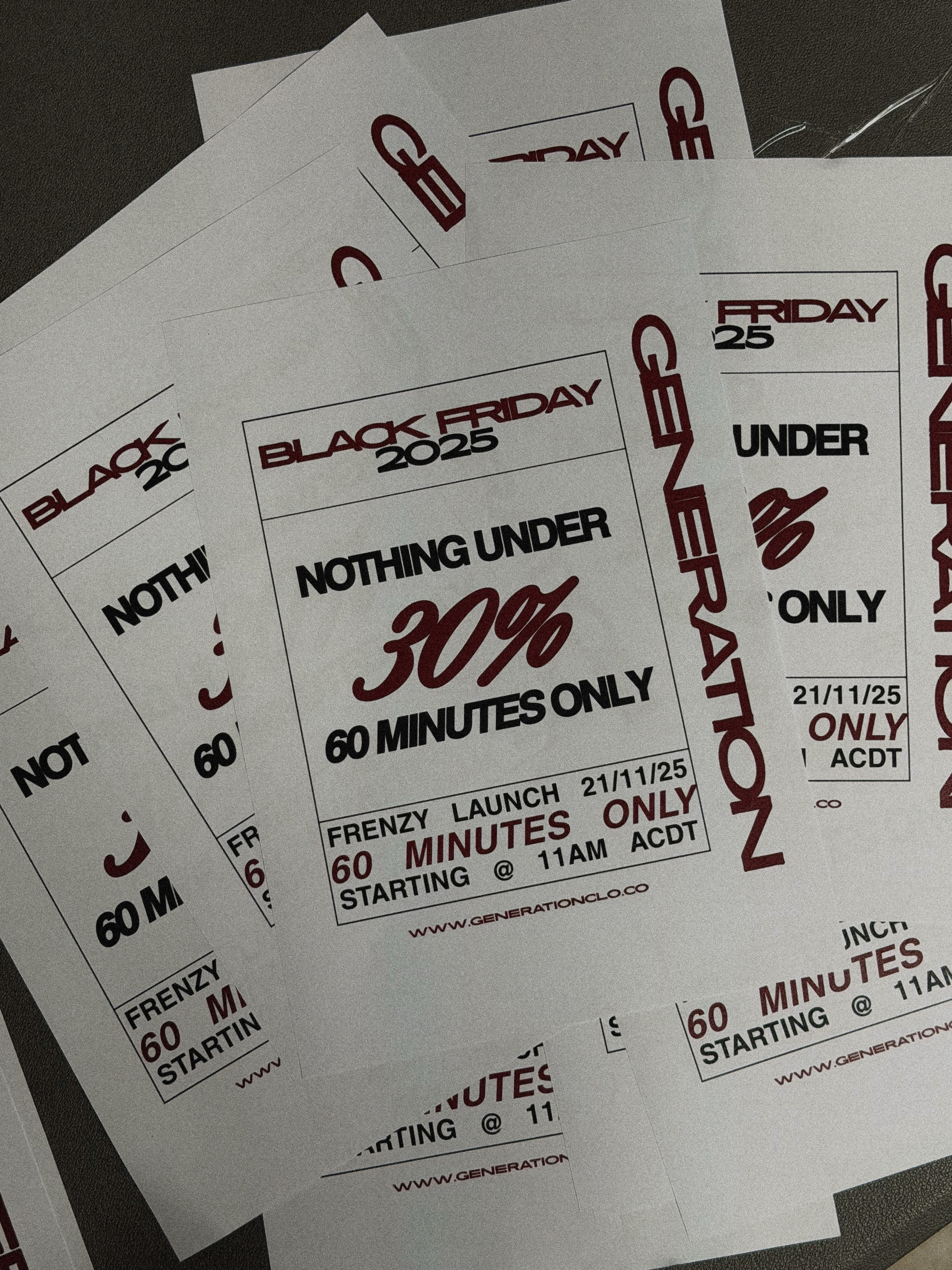 NOTHING UNDER 30% OFF FOR 1 HOUR ONLY. // NOVEMBER 21 @ 11AM - 12PM ACDT. // BLACK FRIDAY FRENZY LAUNCH